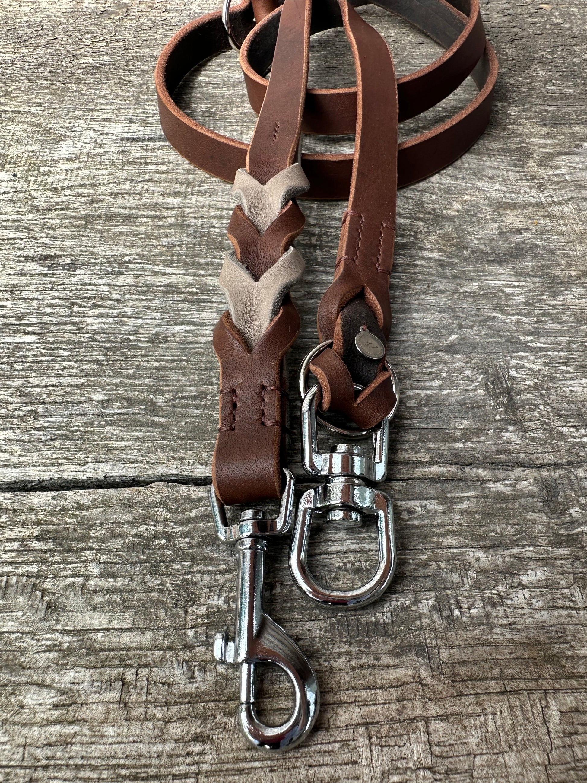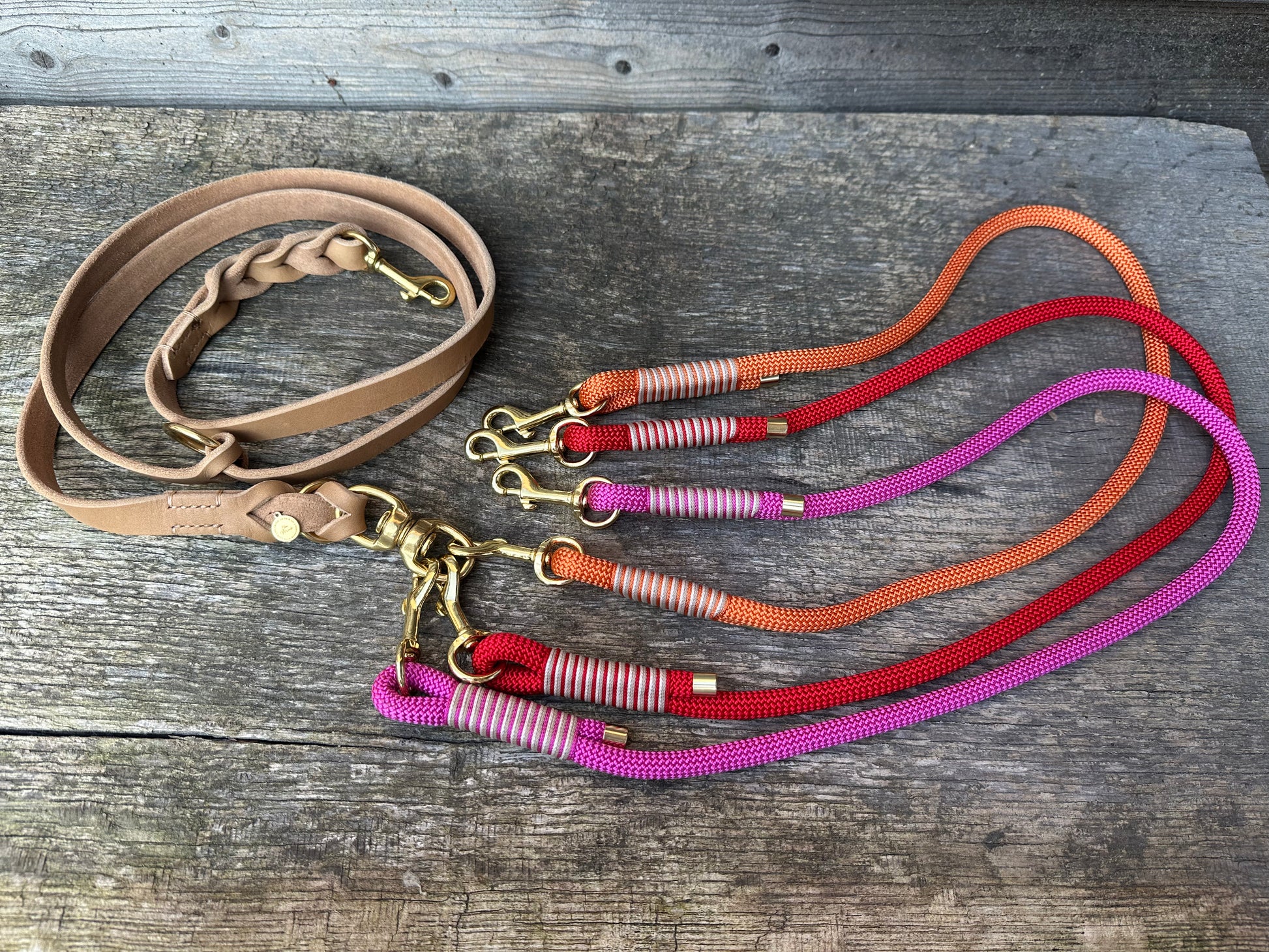 Stelle dir deine individuelle Koppelleine aus vielen Lederfarben individuell zusammen.