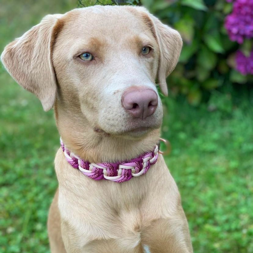 Stelle dir hier dein individuelles Paracordhalsband "Ella" für deine Fellnase zusammen. Das Halsband ist 2,5 cm breit und es können bis zu 4 Farben ausgewählt werden.